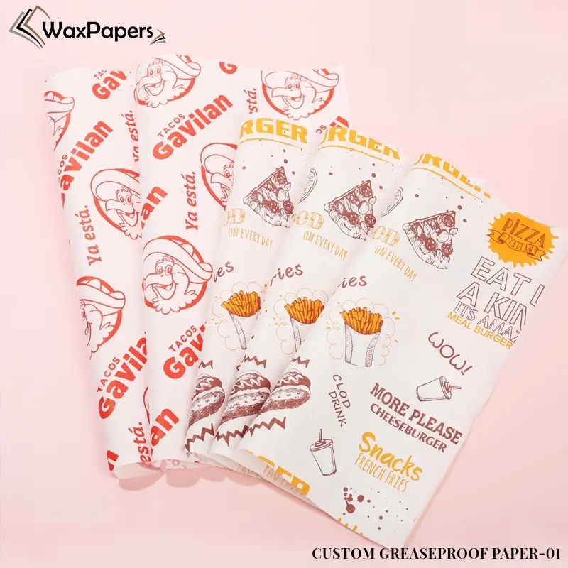 Now say goodbye to old oil-consuming and flammable papers and enjoy the nonstick food baking to let your business shine. Get the best deals available and use our cutting-edge printing methods to tailor the paper to your company's requirements. Place your order right away to use our personalized wax paper to make your food presentation worthy.